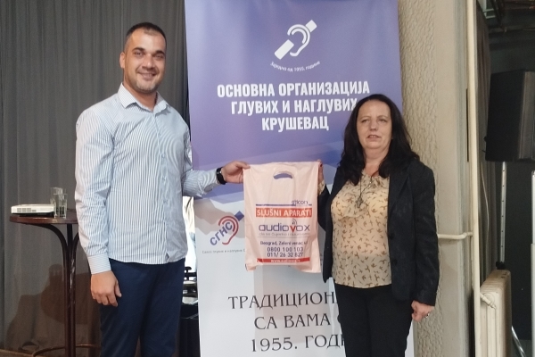 Oticon slušni aparat je uručen gospođi Ljiljani Radovanović iz Kruševca, i to na proslavi jubileja 70 godina postojanja “Osnovne organizacije gluvih i nagluvih Kruševac”. Prilikom uručenja aparata, Ljiljana je izjavila da slušni aparat nosi od svoje osme godine, a da je sa svojim prethodnim aparatom imala brojne probleme. “Često se kvario, nisam mogla jasno da razlikujem zvukove, a dešavalo se i da ne čujem alarm za posao. Godinama sam pokušavala da sakupim novac za nov aparat, ali nažalost nisam uspevala. Nadam se da će mi ovaj aparat pomoći u komunikaciji u svakodnevnom životu, a posebno na radnom mestu gde radim kao trgovac. Kada sam dobila aparat, bila sam veoma uzbuđena i mojoj sreći nije bilo kraja. Zahvaljujem vam se na ovako lepom poklonu, kao i na tome što ste prepoznali mene kao osobu kojoj je slušni aparat zaista bio potreban”.