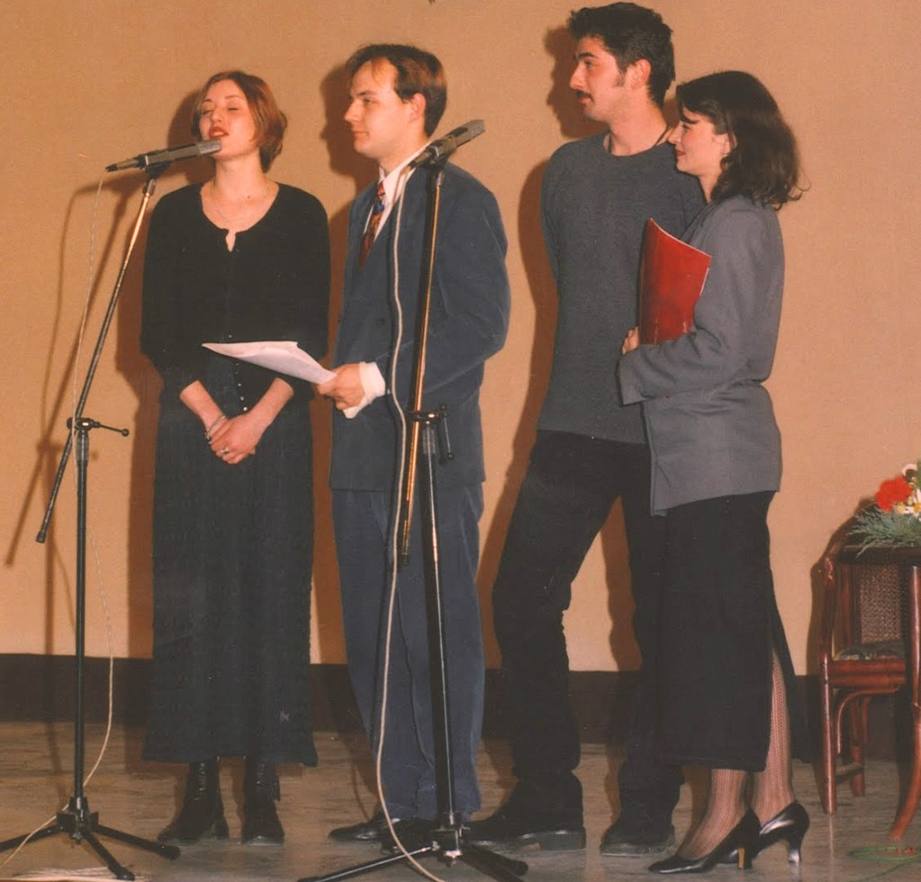 Sa jedne od proslava Studija – nekadašnji članovi, sada profesionalni glumci: Nataša Marković, Ivan Đorđević, Vojin Ćetković i Slađana Nestorović-Ristić