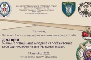 U svečanoj dvorani kruševačkog Narodnog muzeja večeras će biti otvorena izložba „Dostojni“ – značajne godišnjice moderne srpske istorije kroz odlikovanja iz zbirke Vojnog muzeja Povodom proslave Dana oslobođenja grada Kruševca u Drugom svetskom ratu, u Narodnom muzeju Kruševac biće otvorena gostujuća izložba Vojnog muzeja „Dostojni – značajne godišnjice moderne srpske istorije kroz odlikovanja iz zbirke … Nastavi sa čitanjem Svečano otvaranje izložbe „Dostojni“ u Muzeju