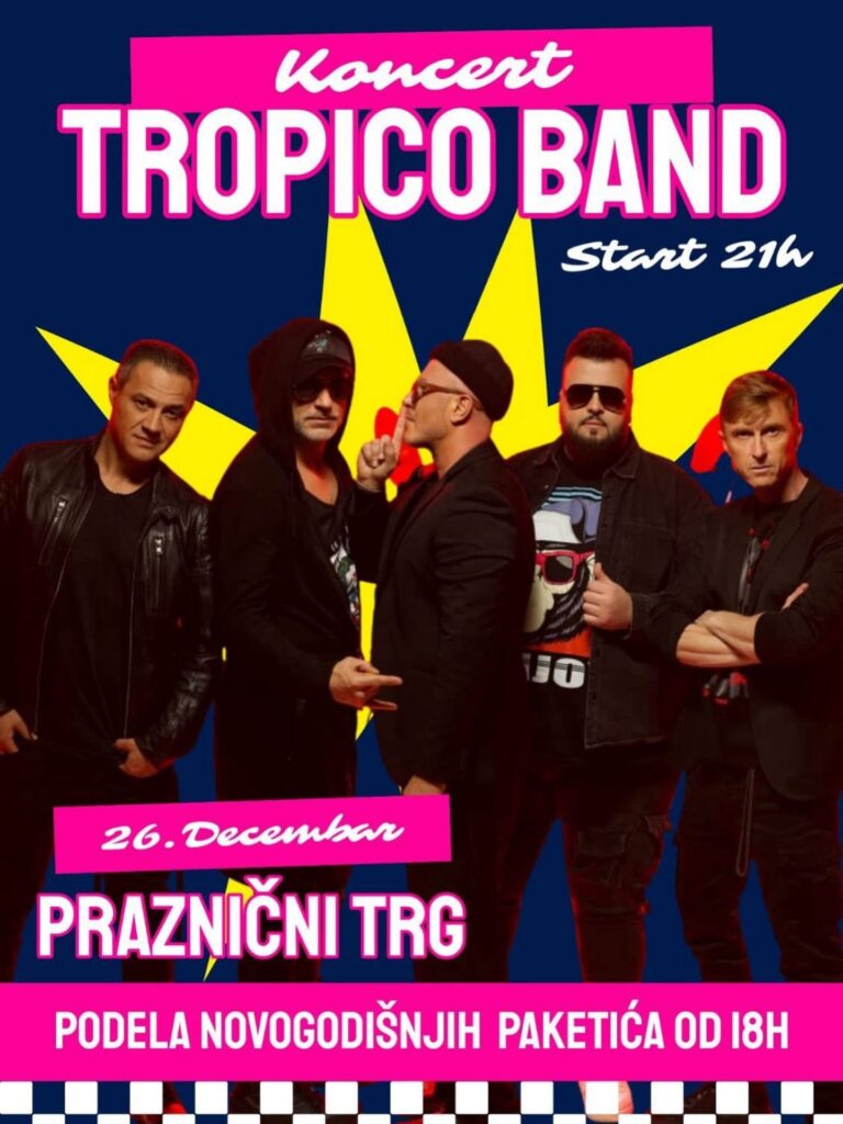 Praznični trg će večeras biti mesto okupljanja svih generacija, uz koncert popularnog Tropico benda, čije su pesme sinonim za dobru energiju i zabavu
